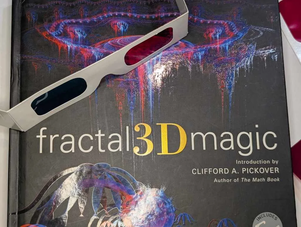 On a road trip a few weeks ago, one of the AirBNBs we stopped at left this charming book out as part of their cozy cottage decor: Fractal 3D Magic by Clifford Pickover (complete with included glasses). I was immediately smitten, then obsessed. By the end of the vacation, I was blind-shooting photo pairs for stereograms with no idea if anything would turn out. But I should slow down.